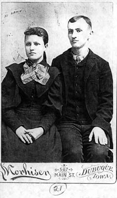 The photograph identified as Picture 20 on the left shows it is from R. L? Dabb, LeMars, Iowa. The picture on the right of the the couple shows it is from Morhisen Photographers, 567 Main Street, Dubuque, Iowa, and is identified as Picture 21.